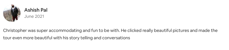 “Chris, thank you so much! Great shots. It was so much fun. Definitely recommending you to our friends and family and hope to come out again soon.”